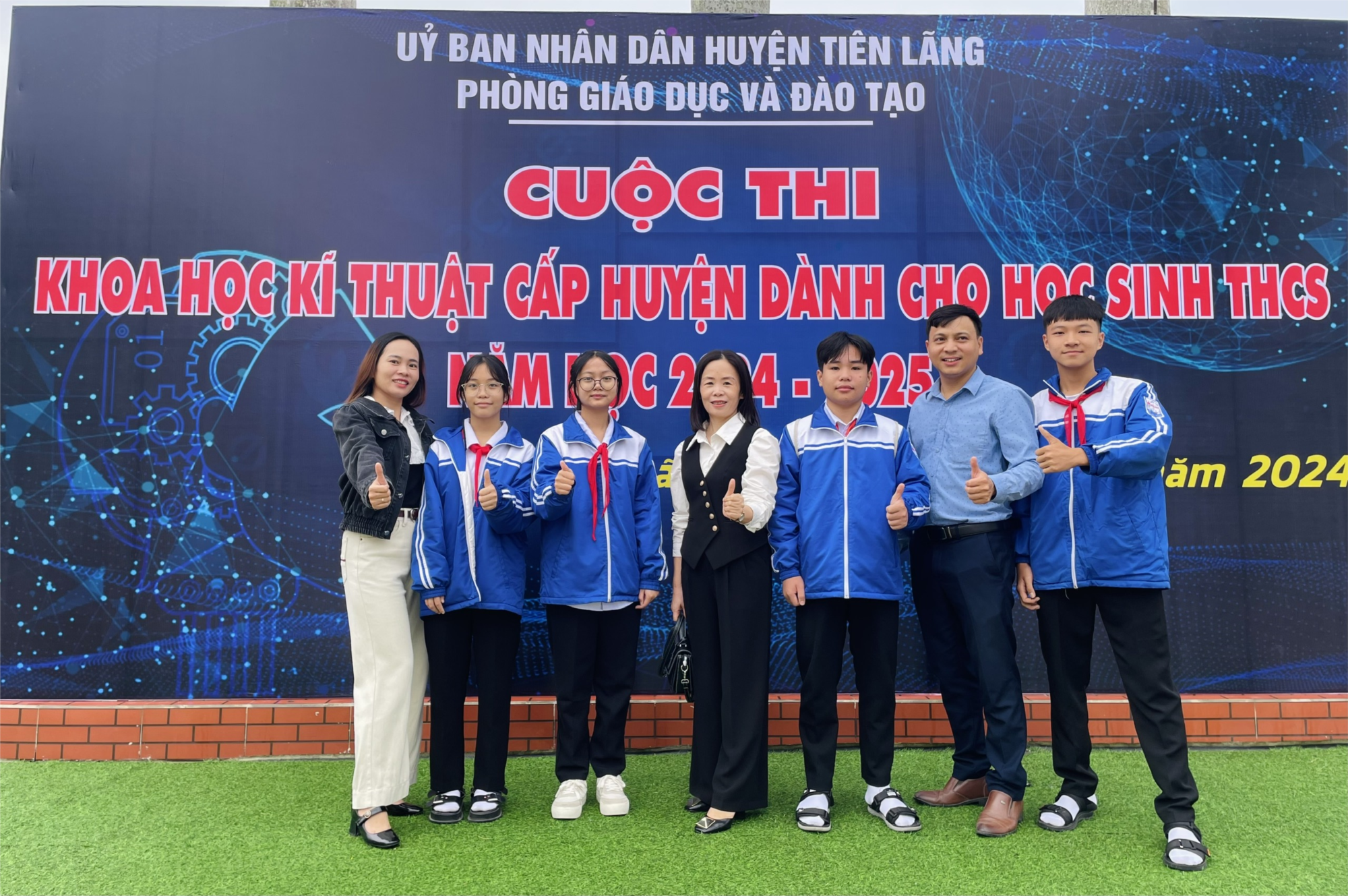 Sáng ngày 30 tháng 10 năm 2024, các em học sinh nghiên cứu 2 dự án trên dự thi vòng chung kết tại THCS Kiến Thiết dưới sự động viên của các thầy cô: Cô Nguyễn Thị Hằng - PHT nhà trường, cô Mai Thị Thu Dung, thầy Vũ Văn Nam.